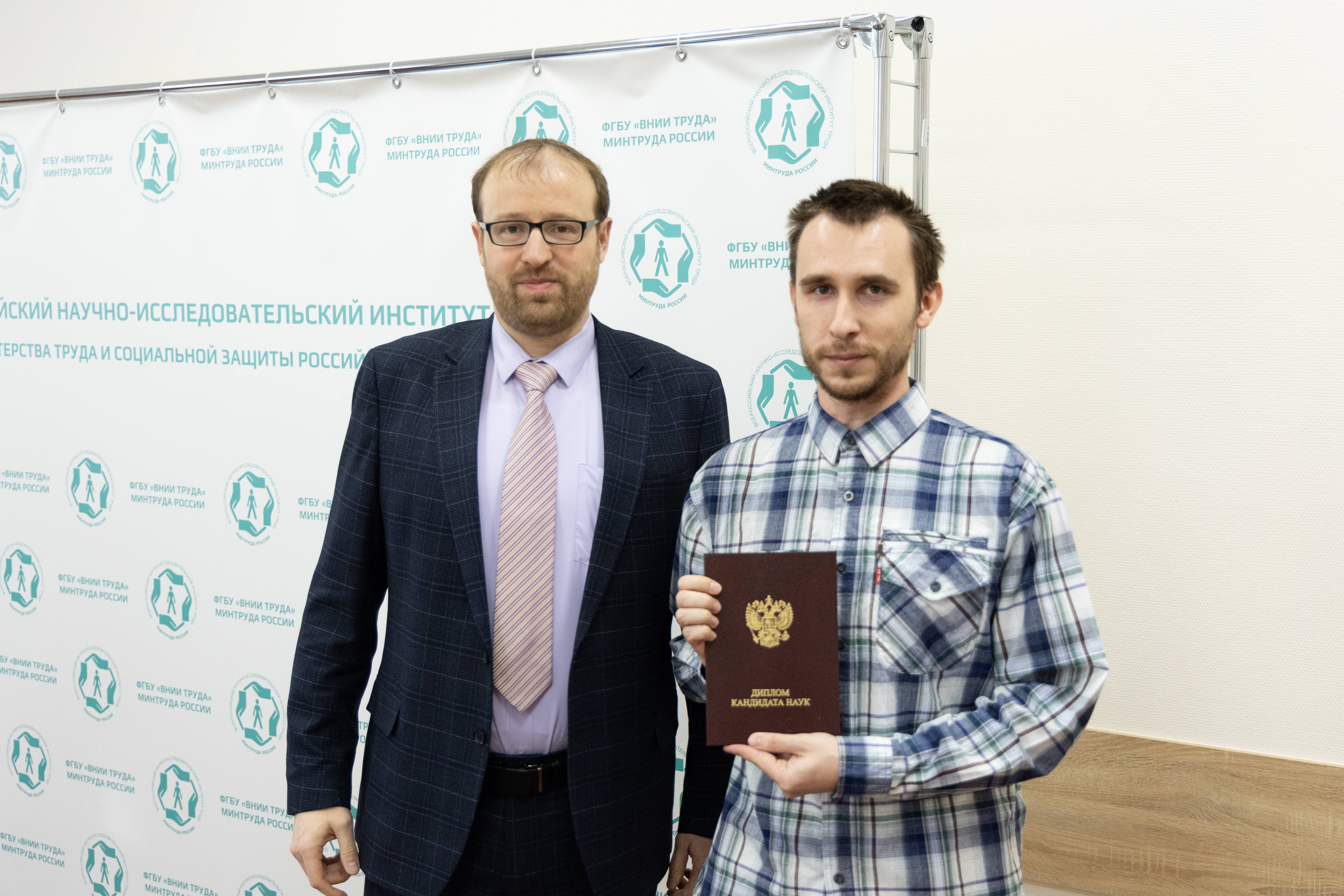 24 декабря состоялось заседание Ученого совета ФГБУ «ВНИИ труда» Минтруда России. В начале заседания и.о. генерального директора Владимир Смирнов вручил Сергею Костюченко и Никите Ненастьеву дипломы кандидатов экономических наук.